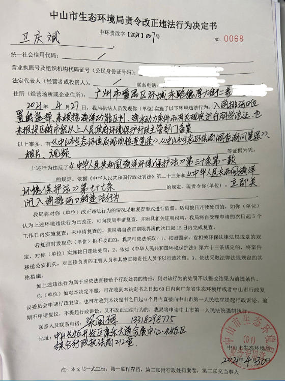 7.责令改正违法行为决定书中环责改字【2021】12008号.png