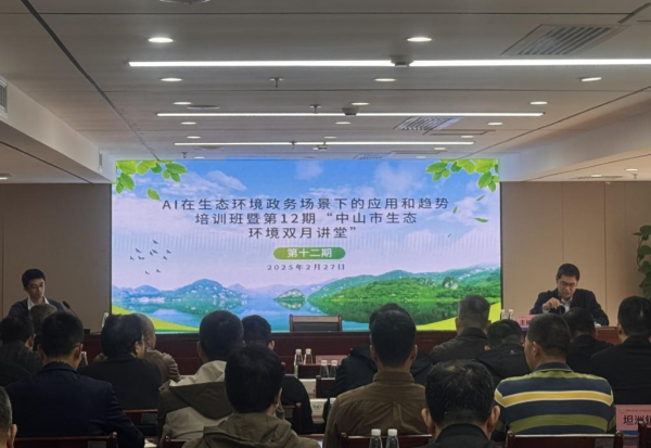 为深入学习贯彻习近平总书记对广东系列重要讲话和重要指示以及在民营企业座谈会上的重要讲话精神,认真落实省、市人工智能与机器人产业发展座谈会精神,扎实推进人工智能与生态环境治理深度融合,全方位提升领导干部专业能力,中山市生态环境局于2025年2月27日下午成功举办了“AI在生态环境政务场景下的应用和趋势”培训班暨第12期“中山市生态环境双月讲堂”。