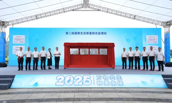 为提升生态环境监测能力、完善生态质量监测网络,广东积极推动国家生态质量综合监测站建设。2024年,广东湛江红树林站(海洋)、珠江口站(海洋)、大亚湾站(海洋)、江门站(森林)成功入选第二批国家生态质量综合监测站名单,为生物多样性的保护提供强有力的技术支撑。活动现场为四个监测站揭牌。