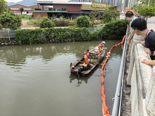 多措并举,有效控制污染扩散:污染处置组根据情景模拟,采取气囊封堵、沙包围堰、围油栏拦截、废水转移及吸附回收等措施,迅速控制并削减污染影响。