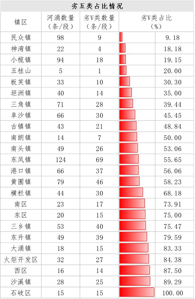 (三)2019年第四季度我市各镇区劣五类河涌占比情况