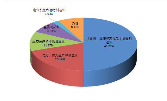 2023年,本市危险废物产生量排名前五的行业依次为39-计算机、通信和其他电子设备制造业、44-电力、热力生产和供应业、77-生态保护和环境治理业、33-金属制品业、38-电气机械和器材制造业,分别占全市危险废物产生总量的49.92%、20.14%、11.87%、8.03%、1.93%,详细情况见图 2。