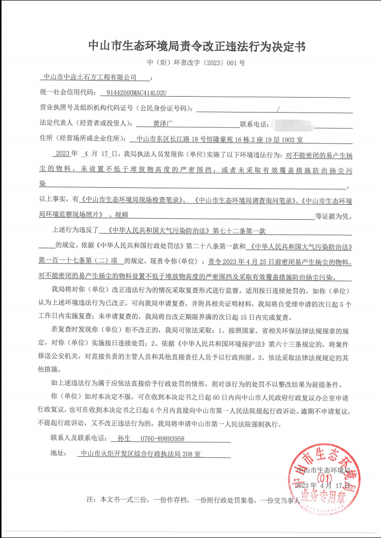 信息来源:中山市生态环境局
